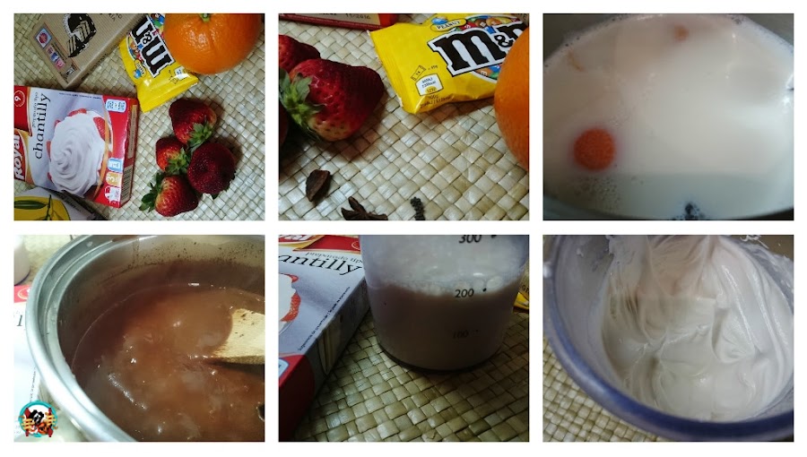 1 sobre de chantillí, 200 ml de leche, 100 gr de azúcar de vainilla.
