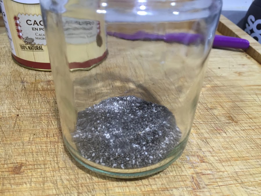 1. Para preparar este puding necesitamos un mínimo de 12horas de antelación. Las semillas de chía requieren de este tiempo para absorver todo el líquido, y conseguir la deliciosa textura de gel que tanto nos gusta.