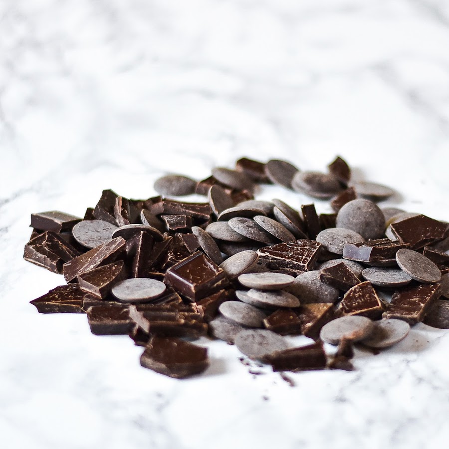 200 g chocolate, cortado en trozos (yo utilicé 100 g de una barra 70 % cacao y 100 g de wafers 74 % cacao)
