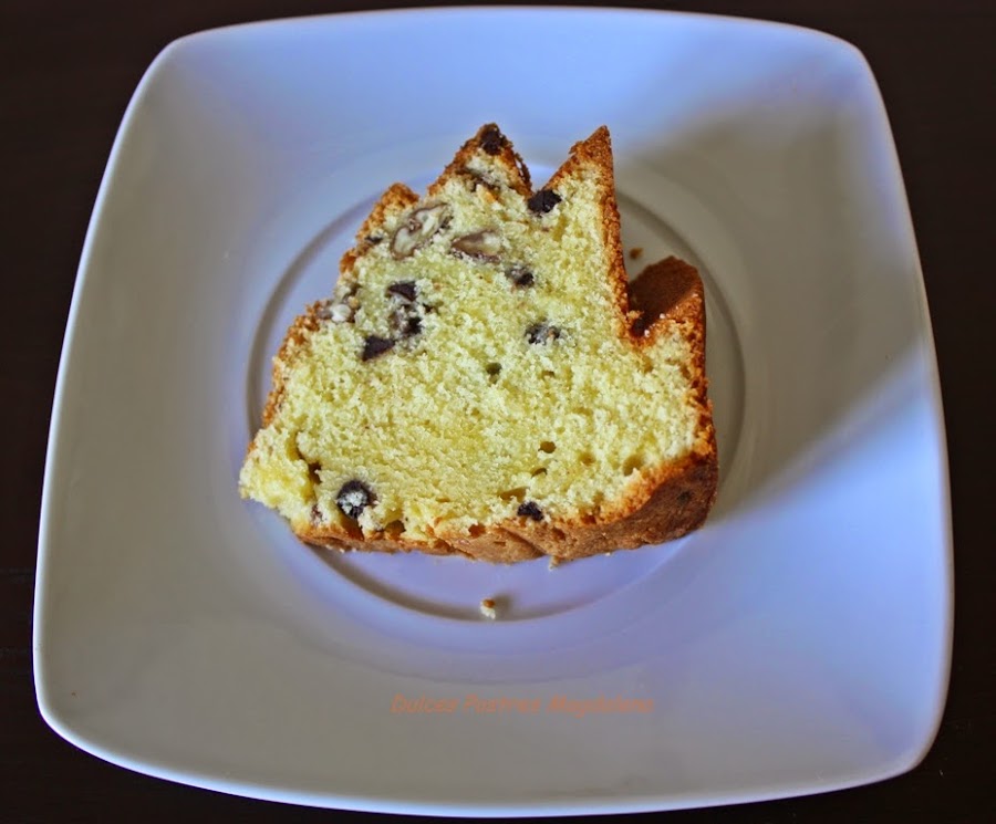 Así que me puse manos a la obra y le cumplí el gusto, bundt cake de ron con pepitas de chocolate y nueces pecanas (su fruto seco preferido).