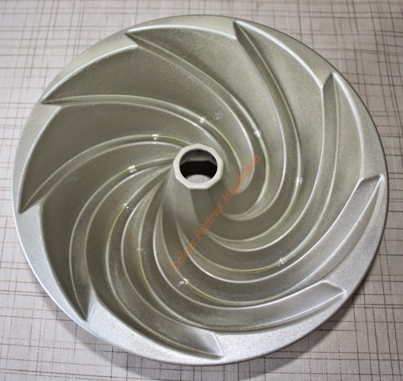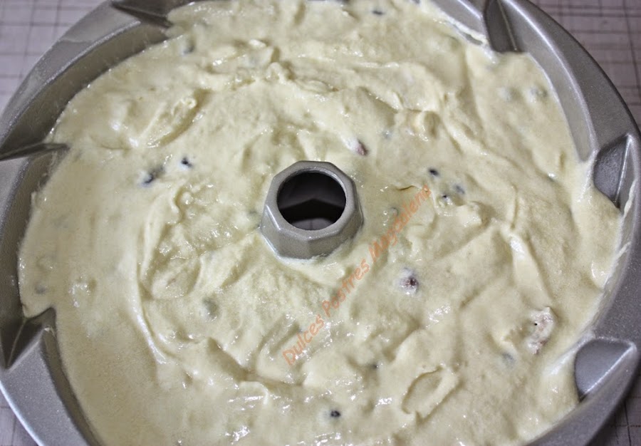 Echar la mezcla en el molde para el bundt cake, comprobando que no queden huecos sin mezcla y que no tenga aire.