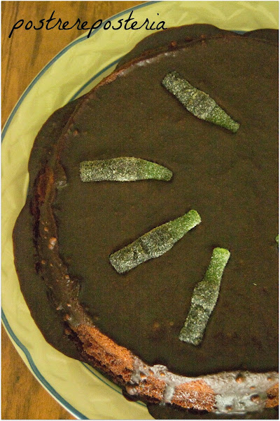 6. Sin dejar de batir, incorporamos el azúcar glas tamizado y removemos. Cubrimos la tarta con la cobertura fria y la decoramos con las gominolas...