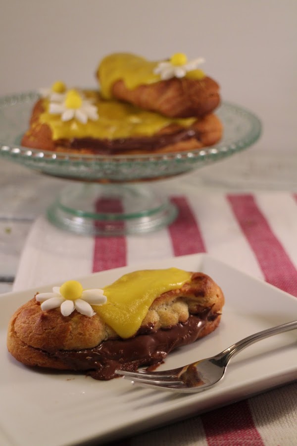 Ya he hecho varias veces estos bollitos llamados eclairs o "relámpagos" que es su significado en francés, quizás por su brillo cuando se glasean por encima.