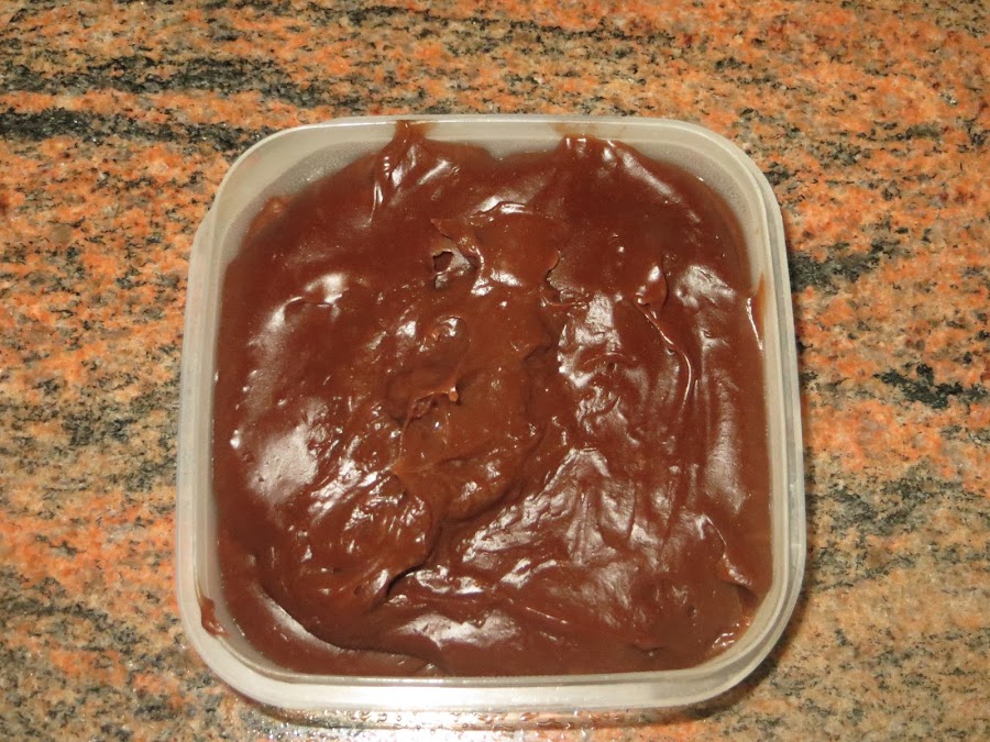 Cuando ya tenéis la mezcla espesa, untáis un taper con aceite de girasol y echáis la mezcla. La metéis en la nevera y la dejáis de un día para otro.