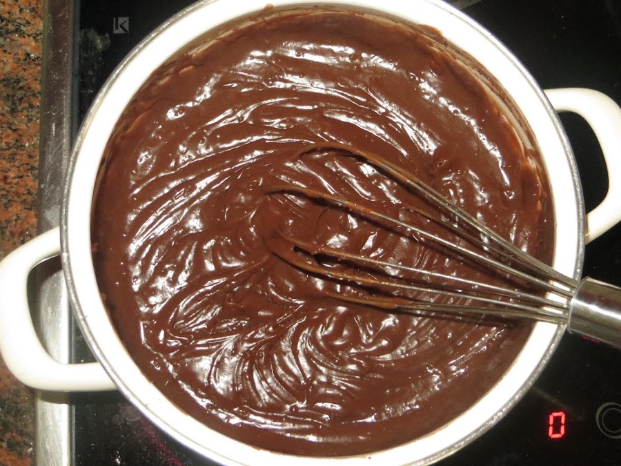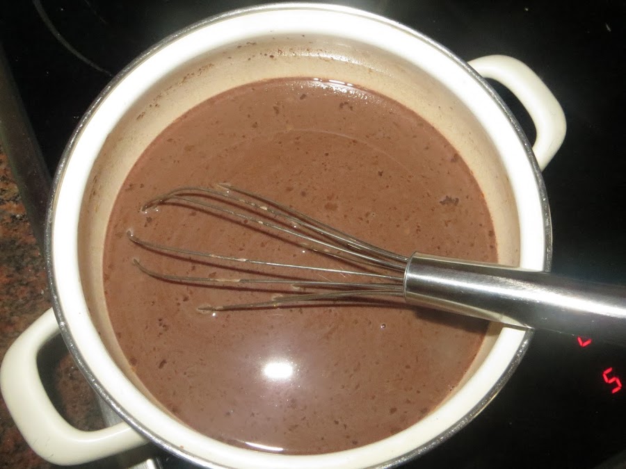 Separáis 100 mililitros del batido de chocolate y en él deshacéis las 3 cucharadas soperas de maicena hasta que no quede ningún grumo. El resto de los ingredientes, excepto los del rebozado, los echáis en una cacerola cuando empiece a hervir echáis el batido de chocolate con la maicena y le dais vueltas hasta que espese. No seáis impacientes, ya que lleva su tiempo, le tenéis que estar todo el rato dando vueltas, ya que si no se os quemaría.