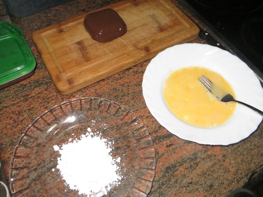 Una vez pasado el tiempo, sacáis vuestro chocolate y lo cortáis en porciones que no sean muy grandes, ya que si no puede resultar un poco empalagoso al comerlo. Rebozáis primero en maicena, luego en huevo y lo ponéis a freír en aceite de girasol. Le dais varias vueltas y lo sacáis a escurrir a un papel. Cuando se enfríe un poco lo rebozáis en azúcar y canela y ya está listo para comer.