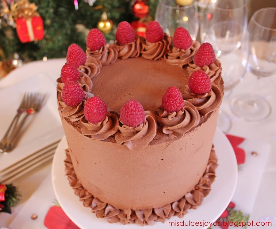 Para darle un toque distinto lo podéis rellenar (entre el bizcocho y la crema), con unas fresitas, frambuesas, o cualquier tipo de bayas, queda riquísimo y monísimo. Yo en esta ocasión he optado por decorarlo con unas frambuesas, y rellenarlo solo con la crema, pero como os he dicho, podéis jugar y rellenarlo con frutas rojas frescas, que le aportan un toque especial de sabor y de color.