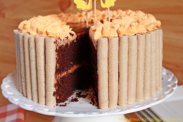 El pastel que os traigo hoy no es uno cualquiera, es un pastel de aquellos que enamoran, que provocan sensaciones, que sorprenden gratamente y que no se olvidan fácilmente. Si, si, tal como os lo digo !!! En una palabra, hoy os traigo un "delicioso" pastel de calabaza y chocolate, que combina dos suaves y tiernos bizcochos de chocolate y calabaza con un relleno de queso (aromatizado con especies como: la canela, el jengibre, el clavo y la nuez moscada) y un glaseado de chocolate. Es una verdadera delicia que se funde en la boca. Para mí, este es uno de los pasteles de calabaza más buenos que he comido nunca. Y me podéis llamar exagerada, pero si os animáis a prepararlo os daréis cuenta de qué os estoy hablando.