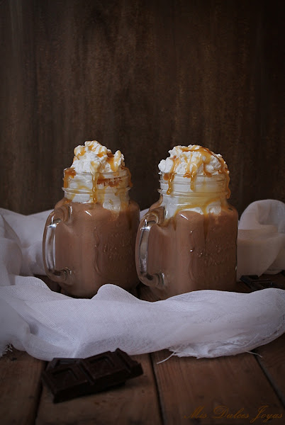 Se elabora con chocolate negro, leche, helado de vainilla y salsa de caramelo salado. Aunque en la receta os indico las cantidades de cada ingrediente, os recomiendo que una vez estén todos mezclados, probéis el batido. Simplemente es para que quede a vuestro gusto. Si queréis un batido de chocolate con un sabor más ligero, debéis añadirle un poco más de leche. Por lo contrario, si queréis que vuestro batido tenga un sabor más intenso a chocolate o a caramelo, sólo tendréis que añadir un poquito más de chocolate o salsa de caramelo.