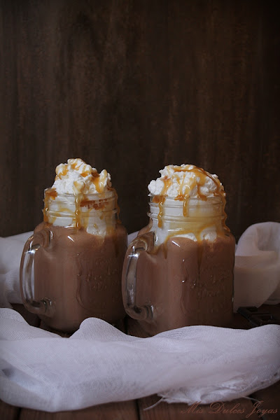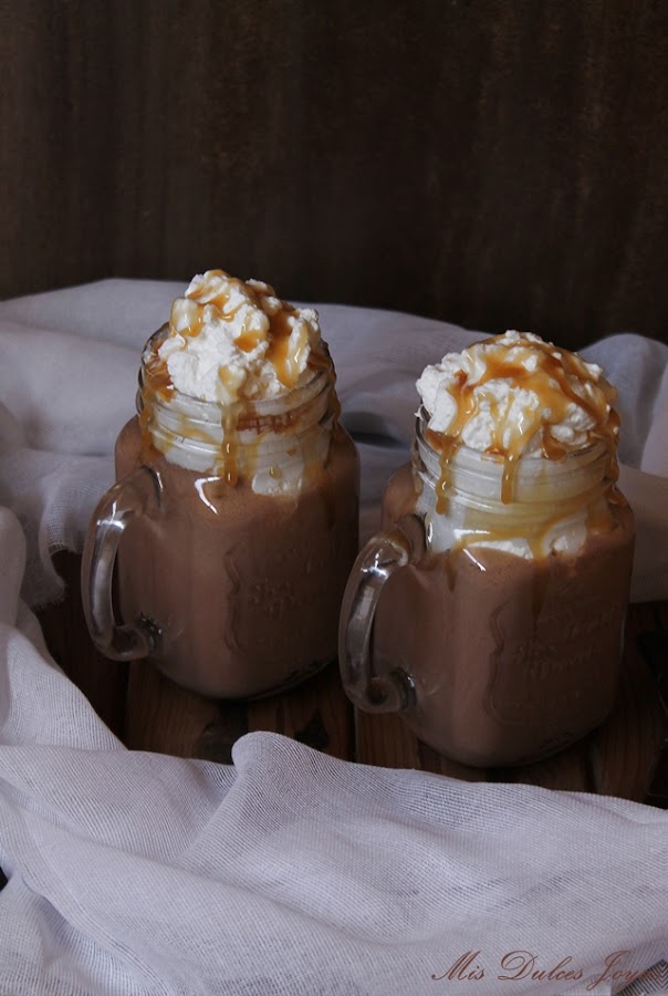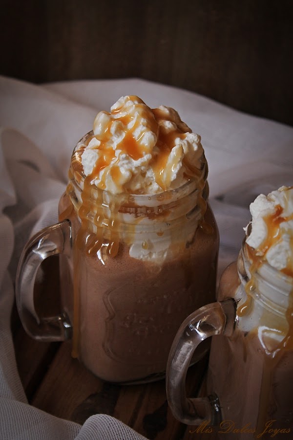 Se puede disfrutar tal cual, sin el topping de nata montada (crema de leche). Yo he optado por servirlo con una buena cantidad de nata montada (crema de leche) y extra de salsa de caramelo, ya que me encanta tomarlo así (o de esta forma).