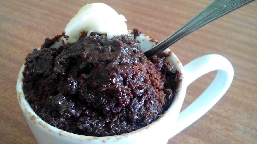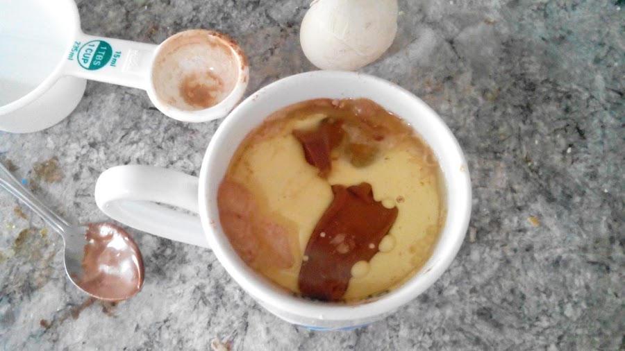 La receta la hice en una taza grande, sin embargo parece ser demasiada mezcla y crece mucho también así que recomiendo que cuando la preparares, la hagas pensando en compartir y utilizar 2 tazas grandes para que no se te derrame o sea demasiado (eso es poco probable, jeje)