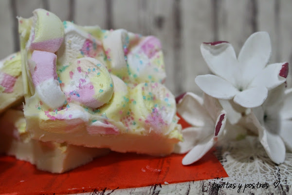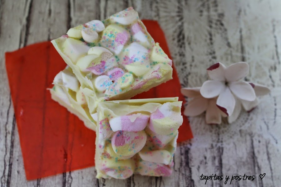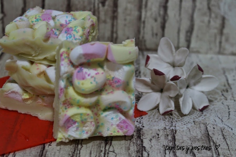 Con los dulces, pasa algo similar, al pequeño le gusta el chocolate con leche y al mayor solo le gusta el chocolate blanco. Como la mayoría de mis dulces lleva chocolate con leche o negro, siempre sale perdiendo, así que he querido prepararle unas chocolatinas de chocolate blanco y nubes para desquitarme con él.