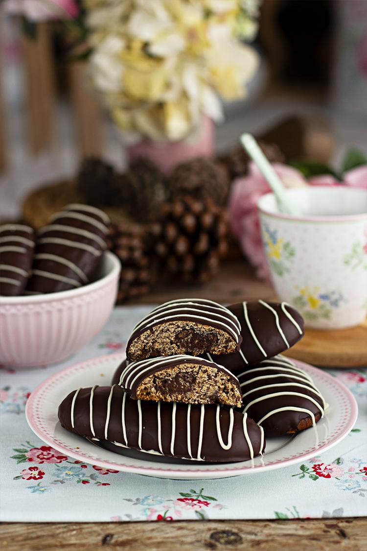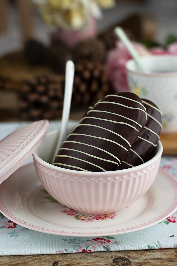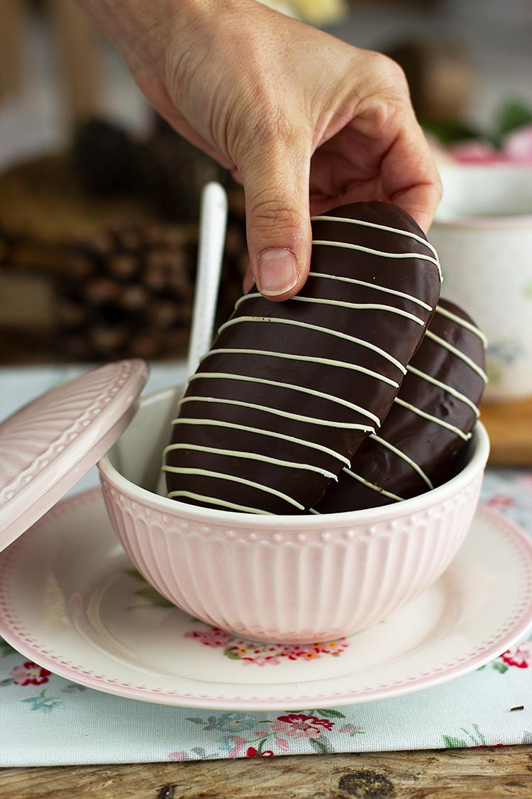 Con ayuda de unas espátulas de ángulo, pasamos los bollitos a una bandeja, plato con un poquito de papel de horno.Dejamos solidificar el chocolate, lo puedes dejar a temperatura ambiente o bien acelerar el proceso unos 15 minutos en el frigorífico