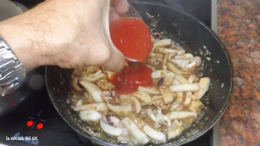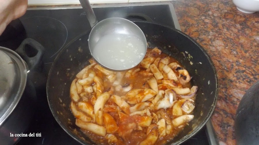 Dejamos a fuego lento durante 15 a 20 minutos segun lo tierno que sea el choco asi iremos comprobando.