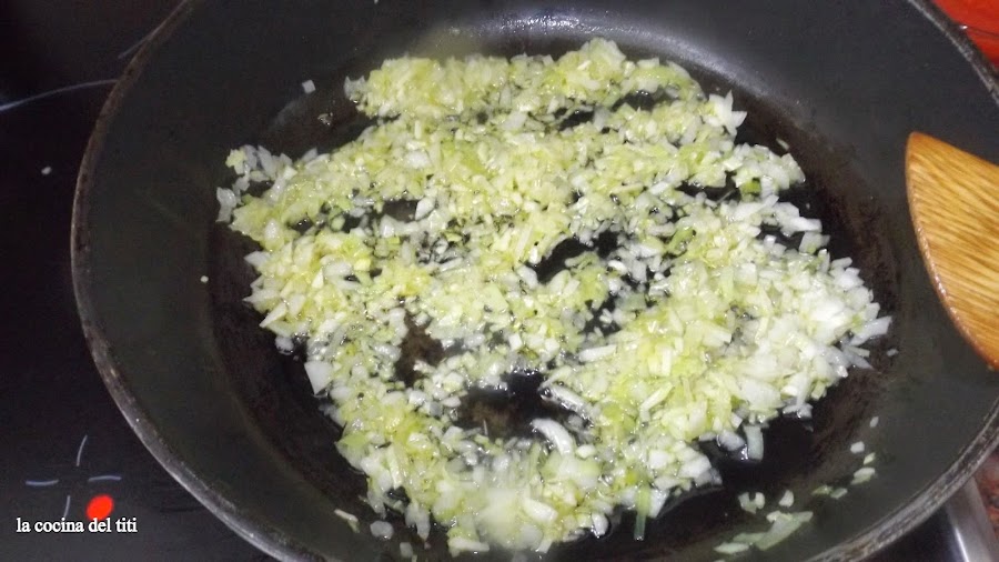 A continuacion pocharemos la cebolla, puerros y ajos todo cortado finamente.