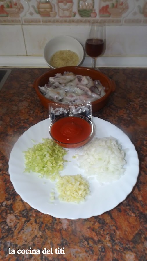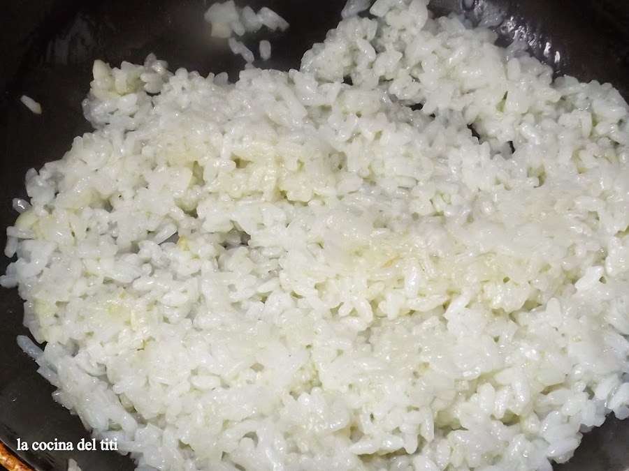 Mientras coceremos el arroz y lo saltearemos con unos ajos picados
