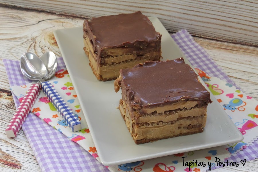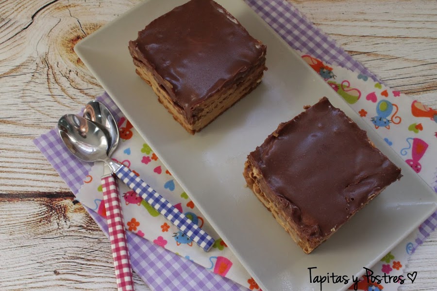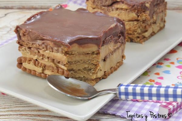 La receta orginal lleva galletas de chocolate que están bañadas en café. Yo he cambiado algunos ingredientes, pero en esencia es igual.