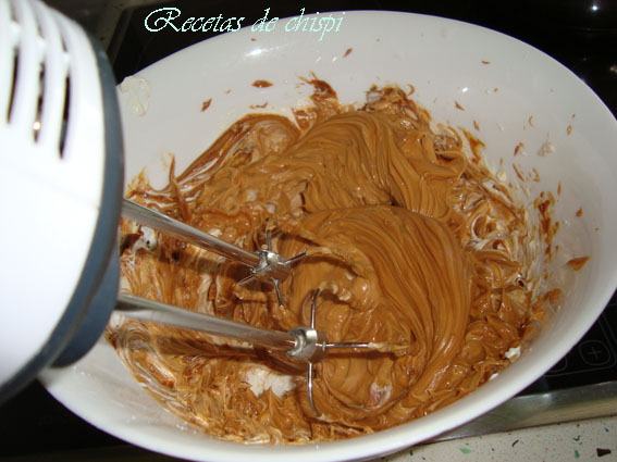 Añadir el dulce de leche y volver a batir hasta que se mezclen los dos ingredientes.