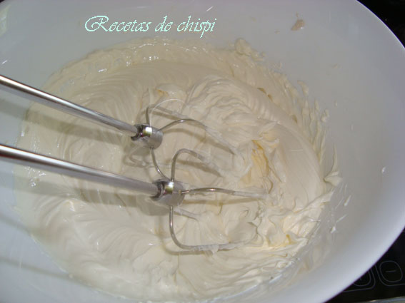 La metemos en el frio durante 4 horas. Ayudandonos con el film la sacamos y cubrimos con el resto de la crema. Y a comer que está riquisima.