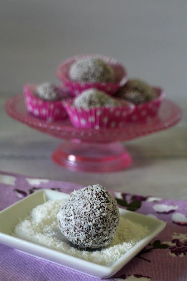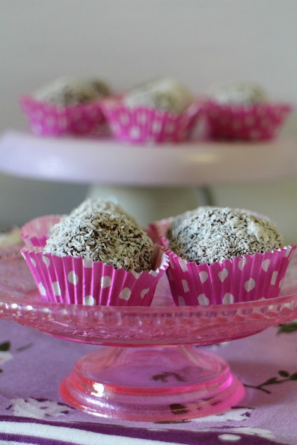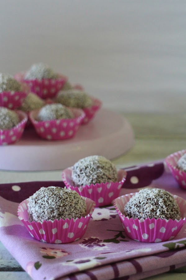Transcurrido este tiempo quitamos el film y cortamos el rulo en porciones. Formamos las bolas con las manos y las rebozamos en coco en polvo y las vamos colocando en cápsulas individuales.