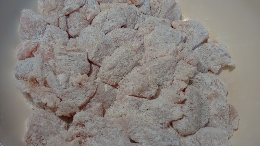 Enharinar la pechuga con la Maizena (Con la harina de trigo no sale igual)