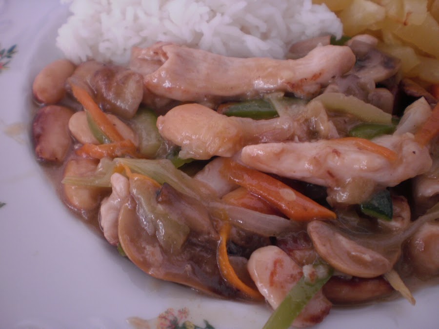¿Podría ser un chop suey de pollo? Aunque con nuestro particular acento andaluz, que igual se irá perdiendo, sonaría: “shosú de pollo”..........esperemos que por muchas influencias exteriores que nos siguen llegando y por ende se llegue a ampliar nuestro recetario “tradicional”, no se pierdan, mejor dicho no se olviden nuestras raices y perdure el carácter amable y abierto de su gente, de los futuros malagueños.