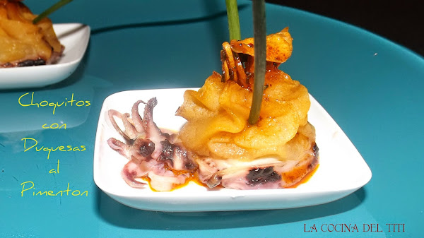 Estos que os traigo son de esos aperitivos que salen sin querer y su resultado es fantastico. Resulta que tenia unos choquitos pequeños (almendritas, sepias, jibias) y queria hacer algo con ellos y la verdad que no se me ocurria nada y parece ser que se hizo la luz y he conseguido algo de lo mas sencillo, facil de hacer y en el que seguro que va gustar a propios y extraños.