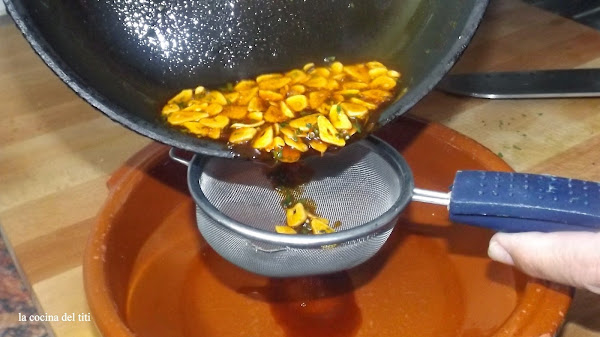 lo dejaremos con un poco de aceite los ajos para su posterior decoracion