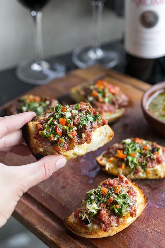 No vas a creer lo ricos y originales que quedan estos choripanes “deconstruidos” con queso y chimichurri. Un picoteo ideal para compartir y matar el hambre cuando prendemos la parrilla para hacer el asado.