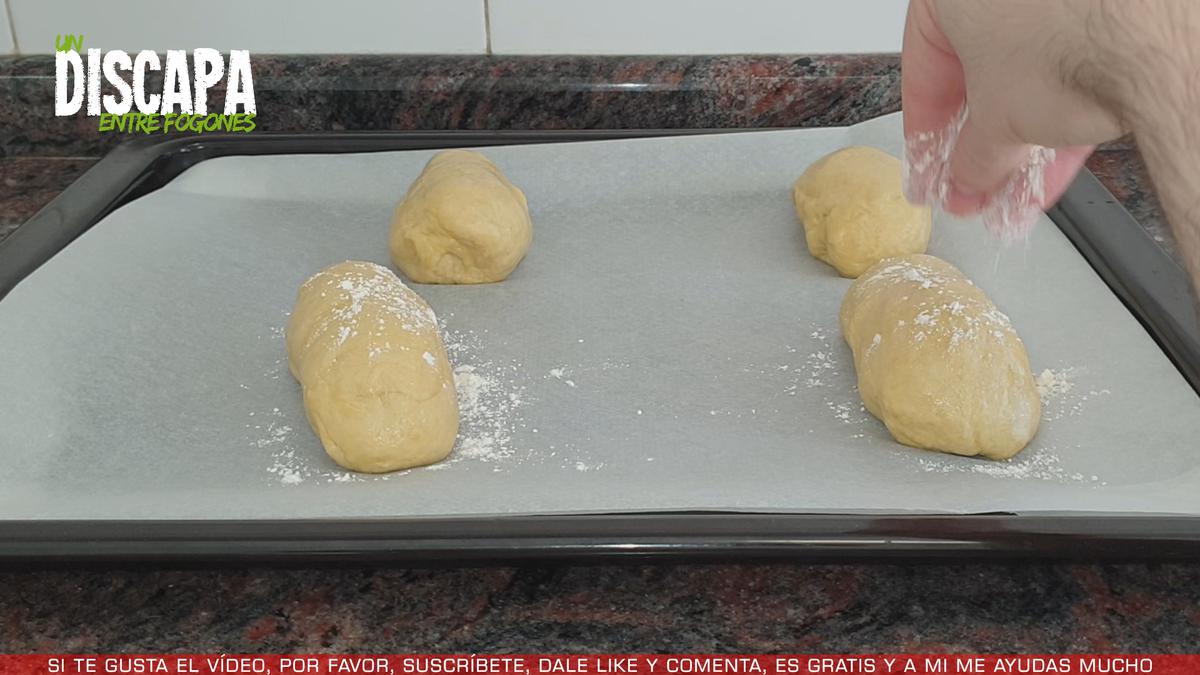 2Cuando ya tenemos la masa lista, vamos a partir la masa en 4 trozos más o menos iguales. Si queréis podéis cortar más trozos y hacer una choripanes más pequeños, eso es a vuestra elección.