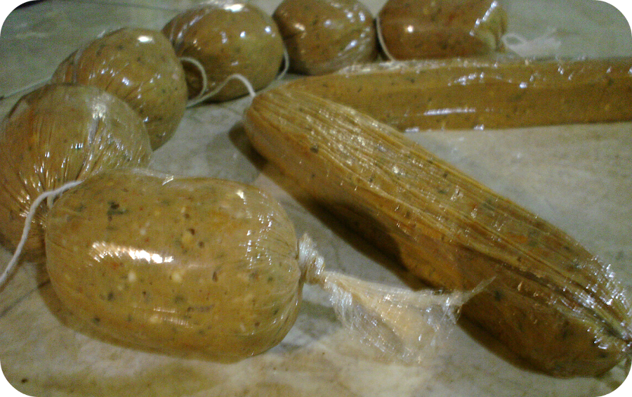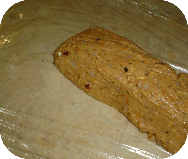 poner esta pasta en un papel film largo y formar un cilindro largo y envolver bien