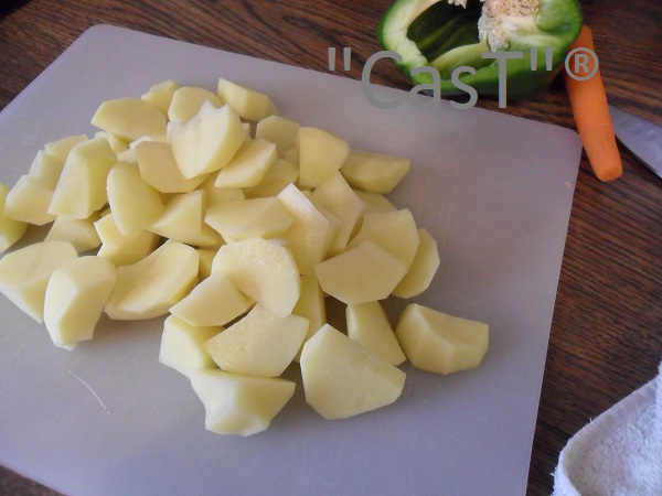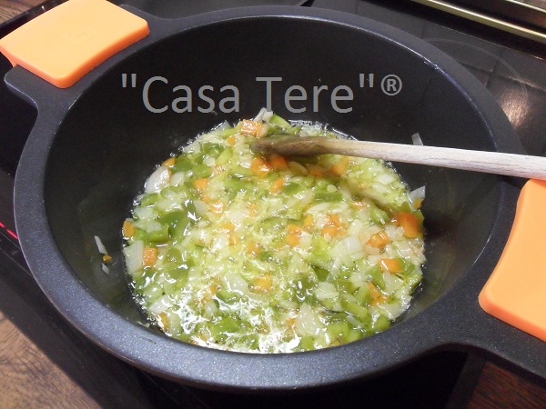 Picamos el pimiento, la cebolla y la zanahoria y ponemos a fuego suave a pochar.