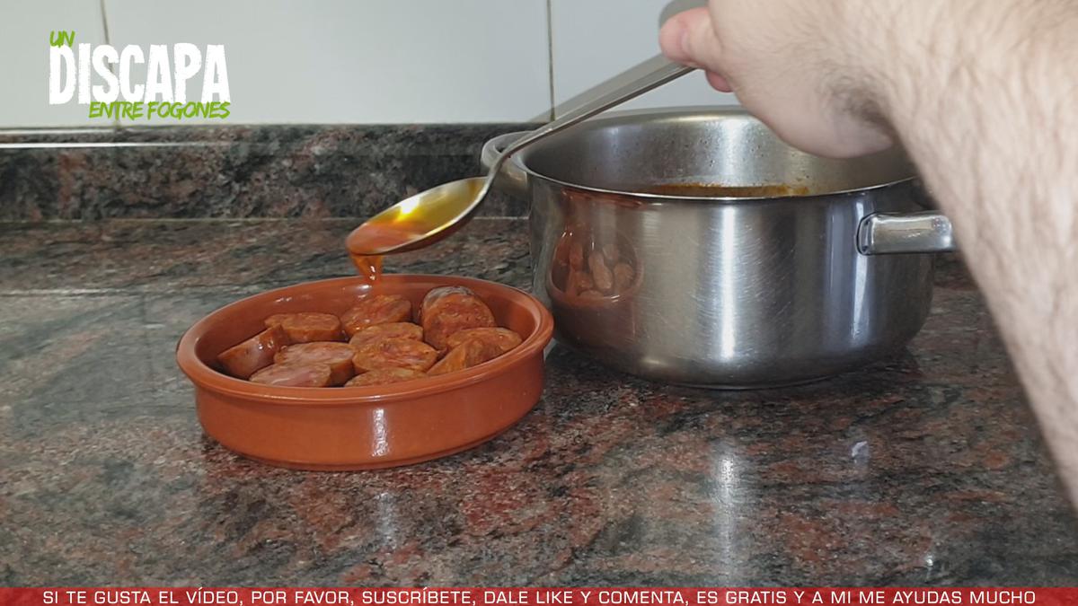 5Cuando la salsa ya ha reducido lo añadimos por encima de los chorizos.