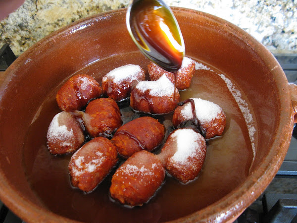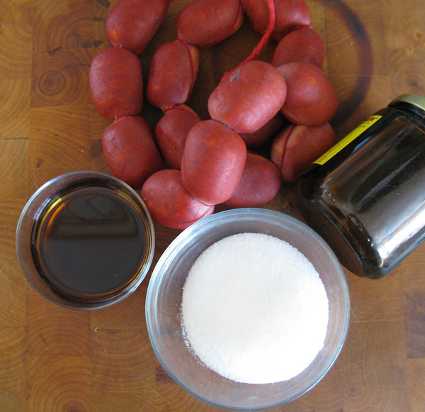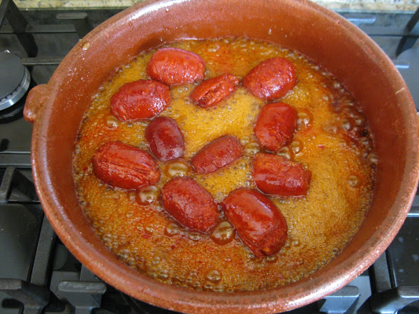 Chorizos, un vaso de vino, 1/2 vaso de azúcar, 1 cucharada de miel