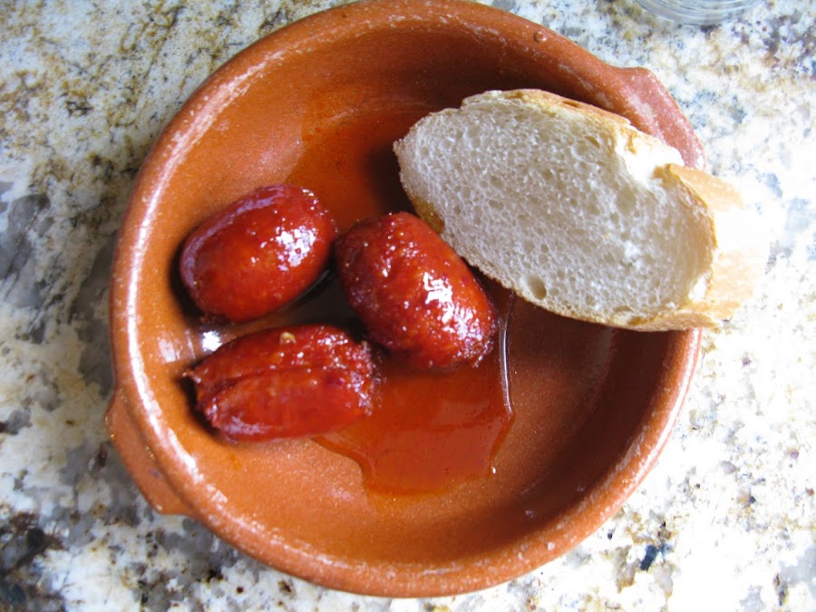 Esta receta de hoy resulta igual de sorprendente que el entorno de calle Alcazabilla, incluido Ibn Gabirol. Chorizo cocido en vino y con almíbar. E igual que esta zona de Málaga, enamora una vez que te lo conoces. Es rápida, fácil y apetitosa. Probadla.