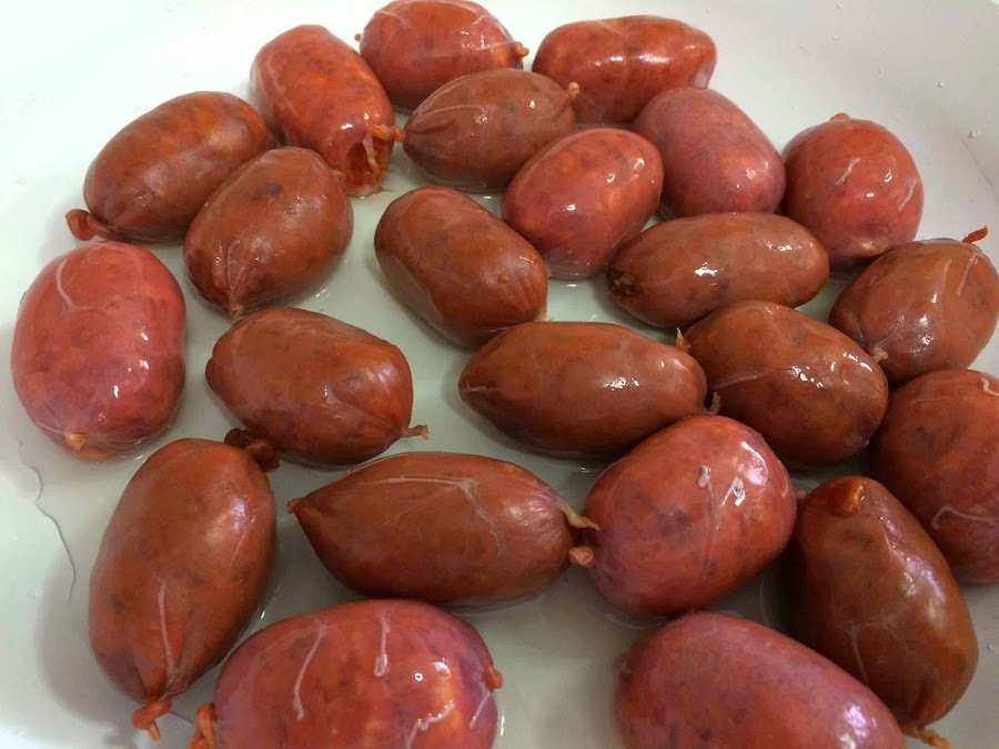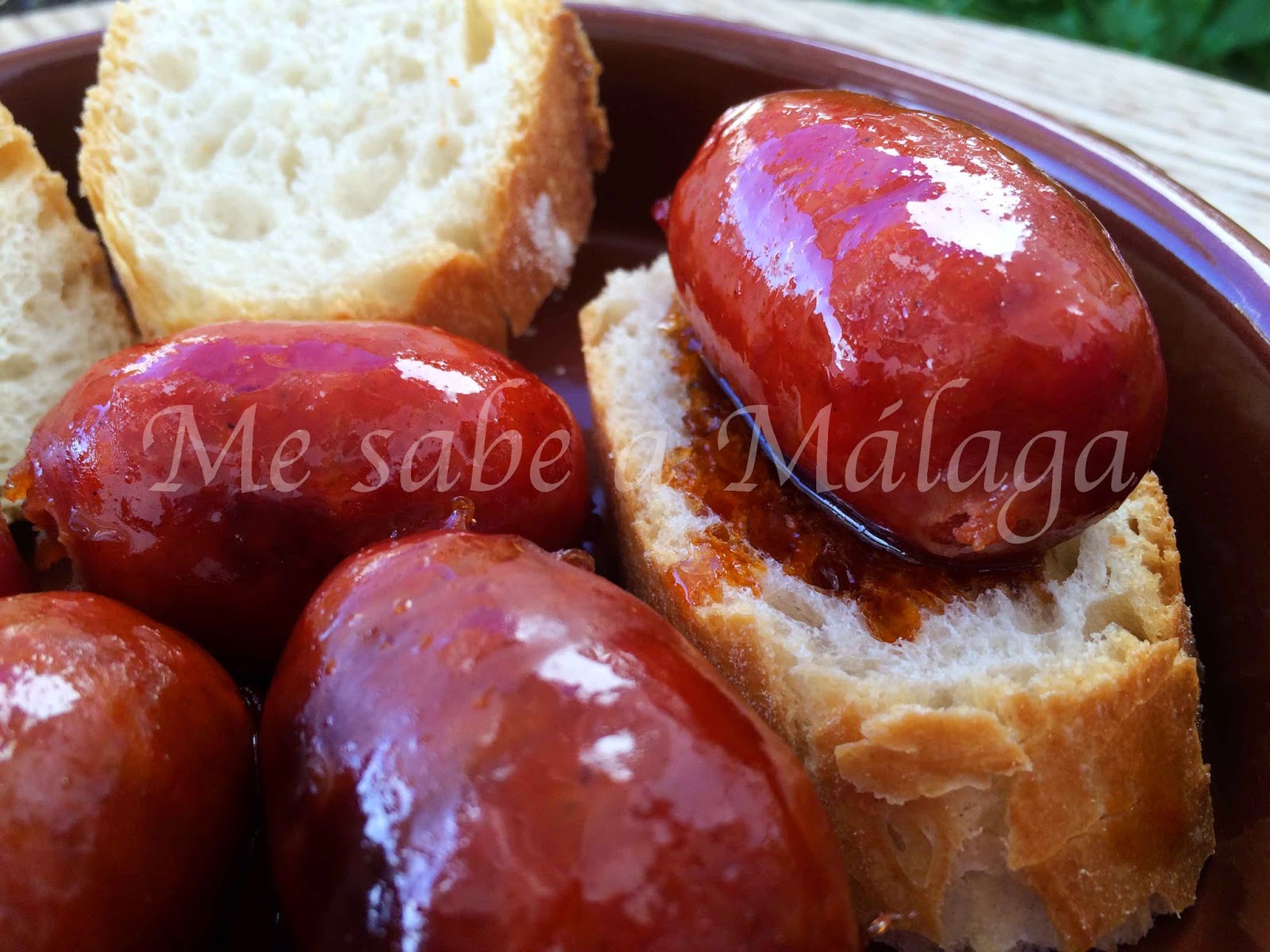Los chorizos en almíbar son un aperitivo perfecto acompañados de un buen pan y una copa de vino.