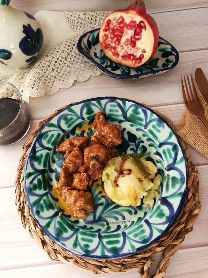 INGREDIENTES: Un kilo de choto o cabrito partido en trozos pequeños, un puñado de almendras, media cabeza de ajos, un pimiento choricero, 2 rebanadas de pan, orégano, tomillo y comino, un vaso de vino blanco. Sal y pimienta. Aceite de oliva AOVE.