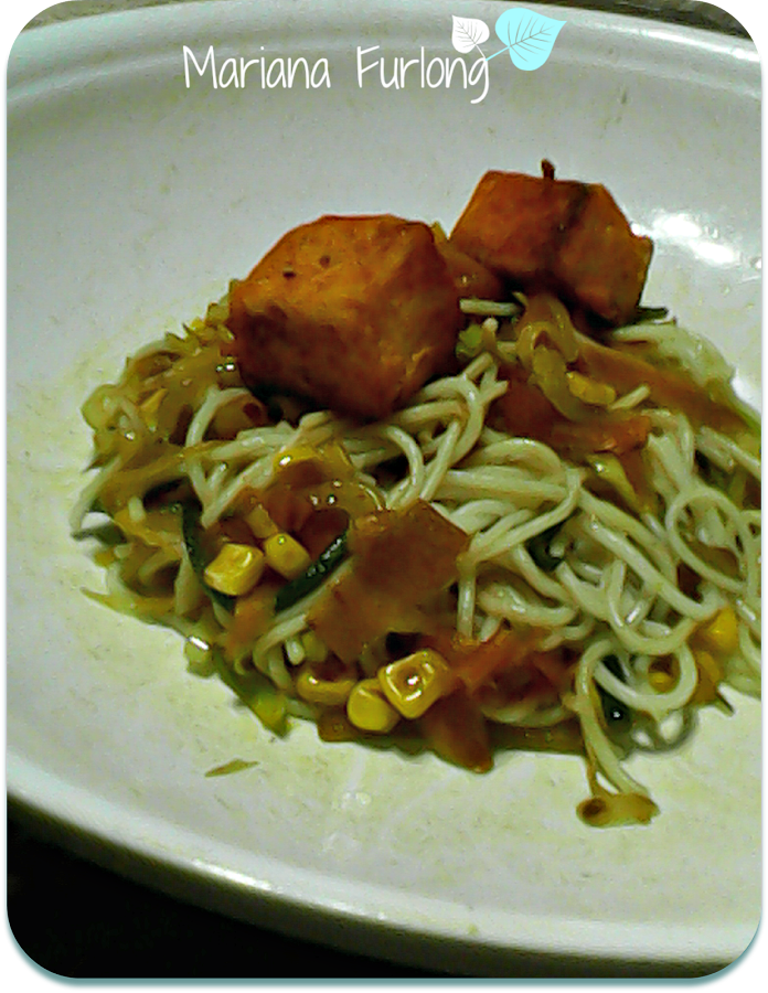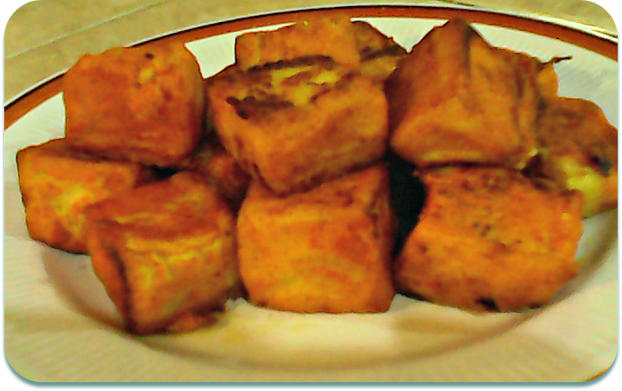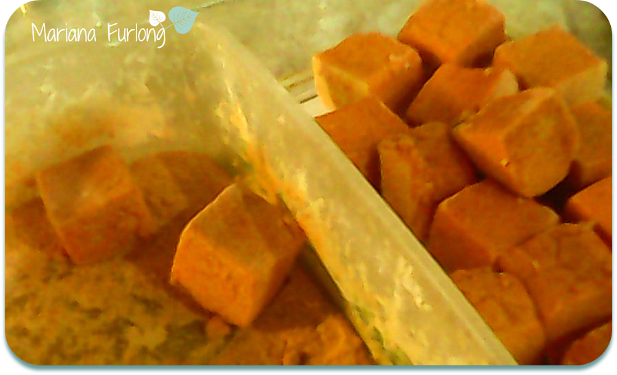 el Tofu Birmano lo pasamos por fécula de maíz o como hice yo por harina y pimentón dulce.