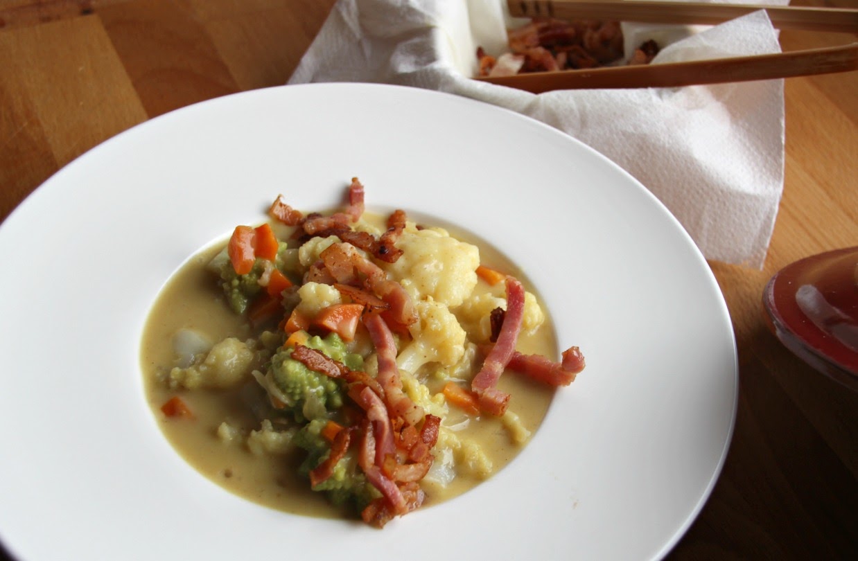 Entre tu y yo... una sopa de verduras (¡brutal!) con curry Marsala pero con textura de bechamel.