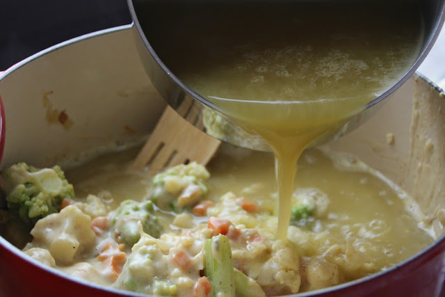 * No añadas todo el caldo. Reserva un poco por si la sopa queda demasiado densa y quieres diluirla.