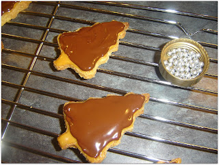 Luego fundimos el chocolate al baño maría o al microondas. Dejamos templar y luego repetimos la misma operación que con el caramelo. Decoramos con las bolitas de azúcar. Esperamos a que solidifique el chocolate... y a disfrutarlas!!!