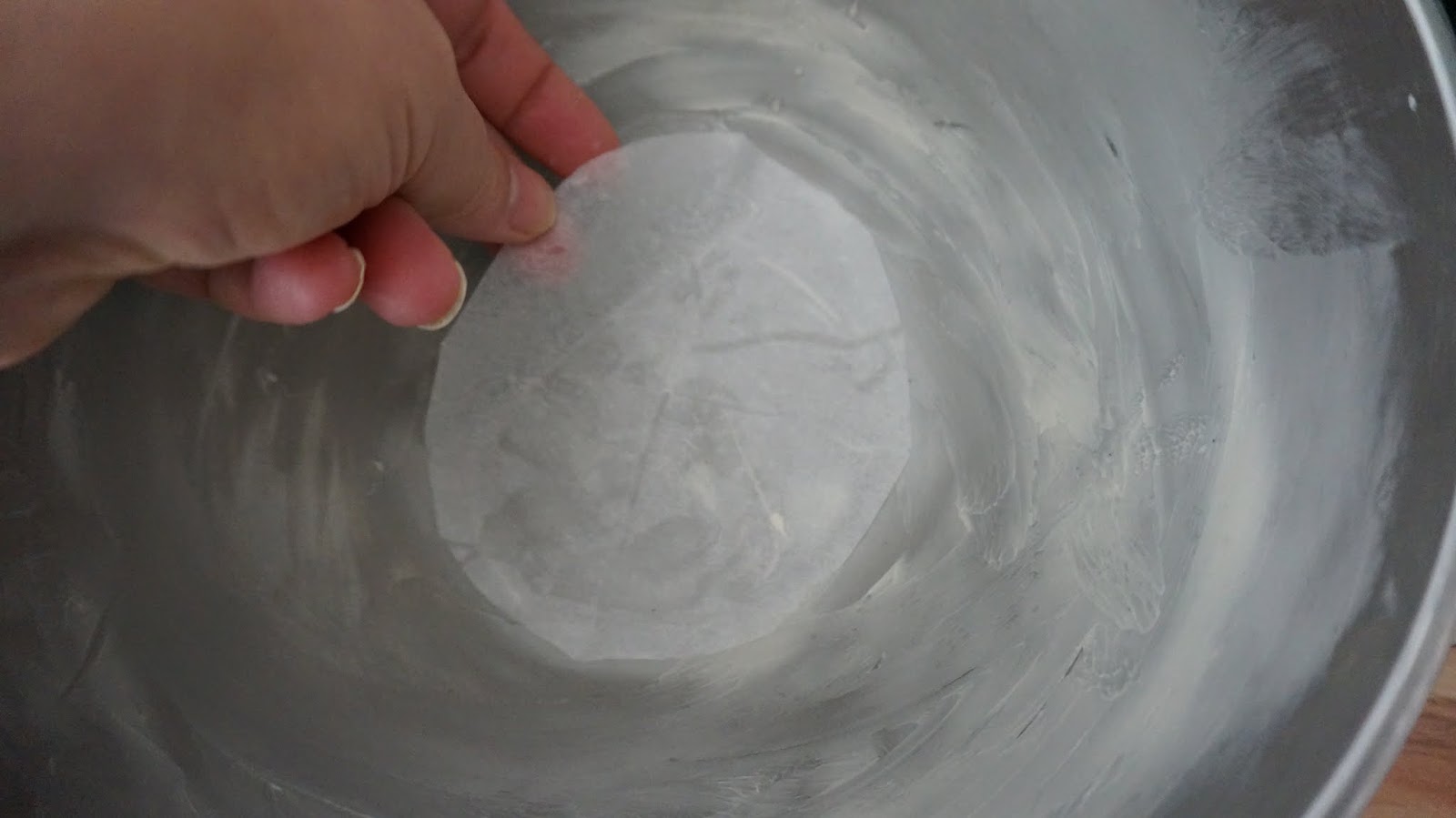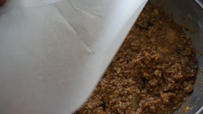 8.- Pon dentro de un molde tipo bol, enmantequillado, y en el fondo del bol, un disco de papel de cocinar