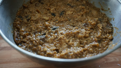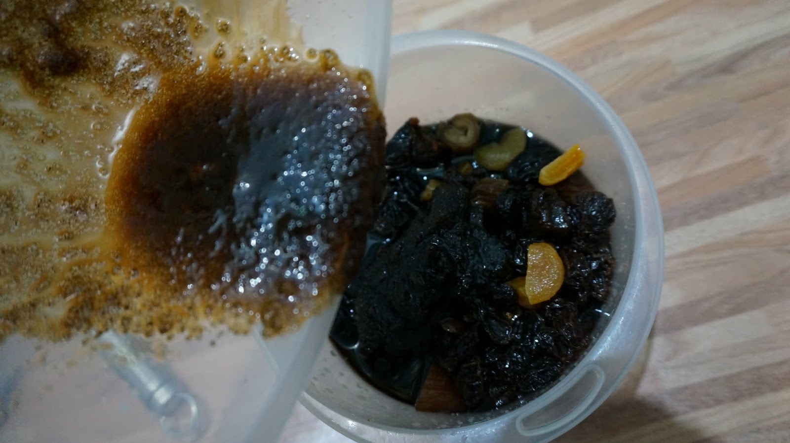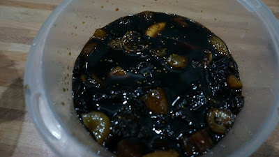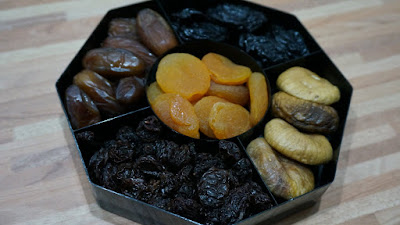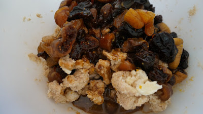 1.- Cortar la fruta en trozos, yo usé orejones, ciruelas pasas, pasas de uva, dátiles e higos secos tiernos