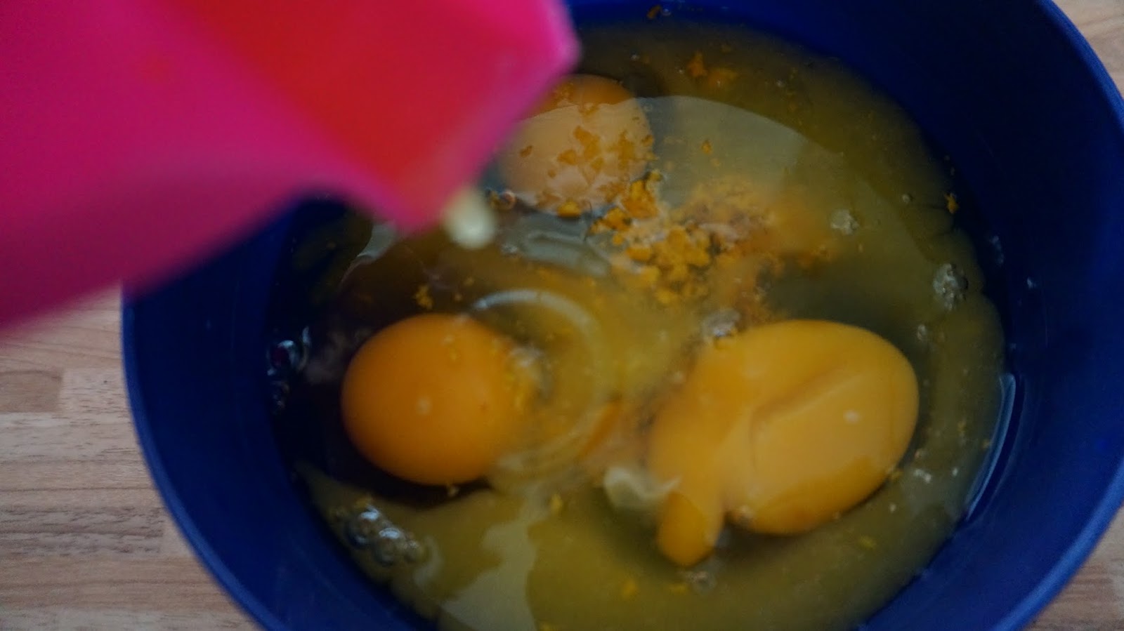 A los huevos, agrégale el zumo y la ralladura de piel de naranja, y lo mezclas con las frutas maceradas, con su licor incluído