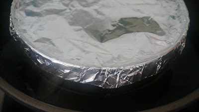 ponle una tapa al bol, donde está el puddin, si no tiene, entonces fabrica uno con papel de aluminio, sellando bien el borde ( en el vídeo se vé cómo lo hago)