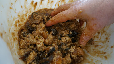 Mezcla todo, usando las manos, para que se empape bien el pan,