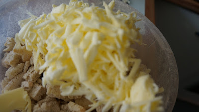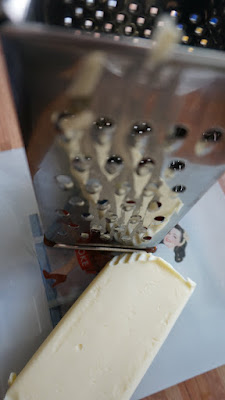 Ralla con el rallador grueso, la mantequilla bien fría