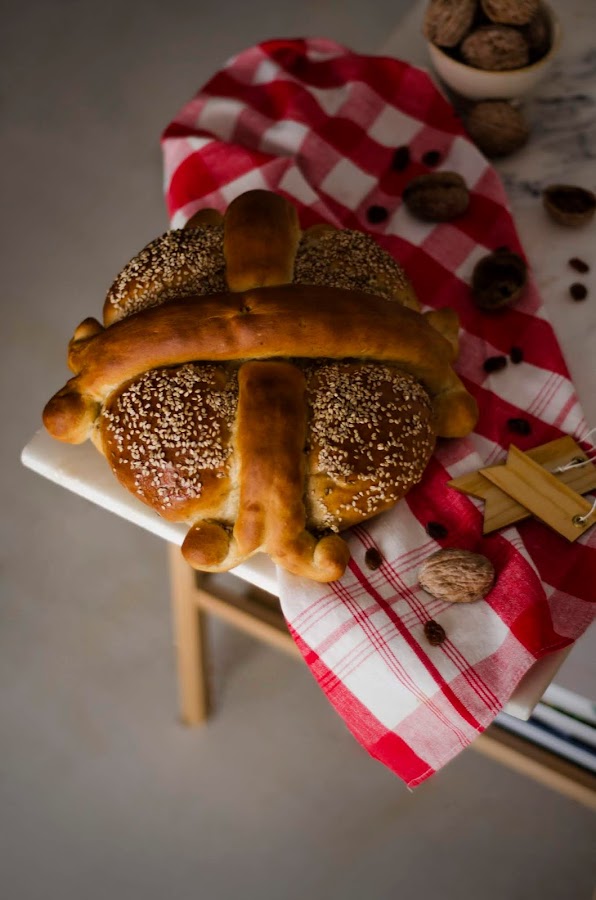Ya sabes lo que me gustan las masas levadas. Amasar, hacer distintos formados...y si por algo se caracteriza este dulce de Navidad griego, además de llevar pasas y nueces, es por su peculiar y preciosa forma.