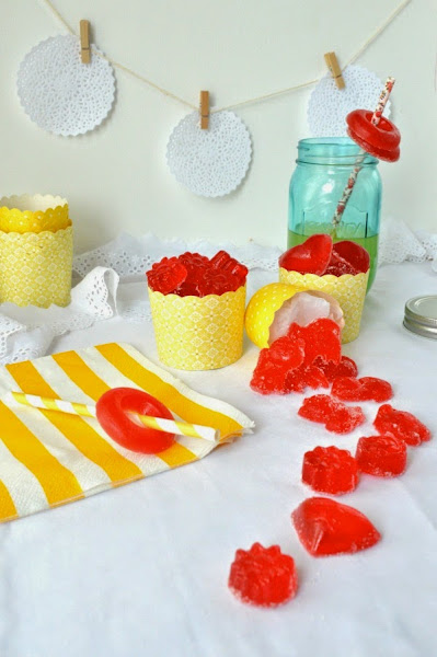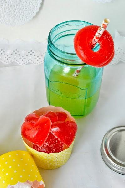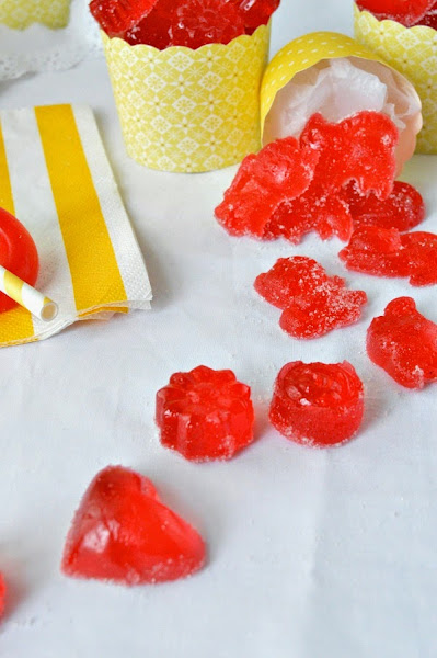 ** Since I have no strawberry juice, I make it myself mixing water and strawberry paste. If you prefer your candies being any other flavor, you can use fruit juice directly (pineapple juice, orange juice...).