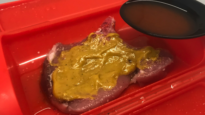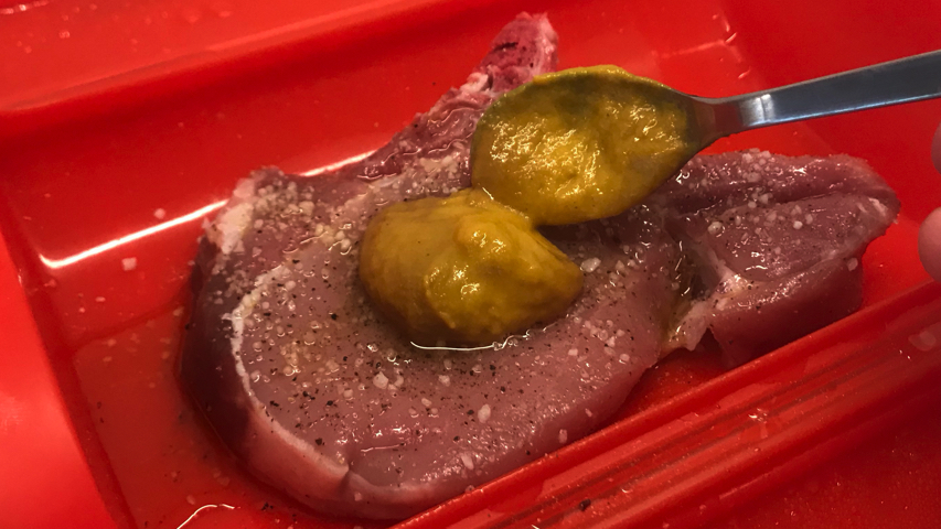 Salpimienta el otro lado y úntalo además de mostaza.
